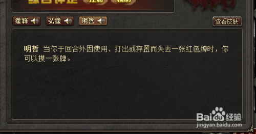 明哲:当你回合外利用、打出或弃置一张红色牌的时辰,你可以摸一张牌。