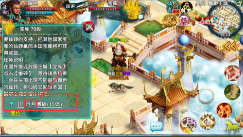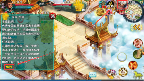 偷砖后点击王城传送卷,直接回到直接国度王城,到宝库提交使命。获得年夜量经验