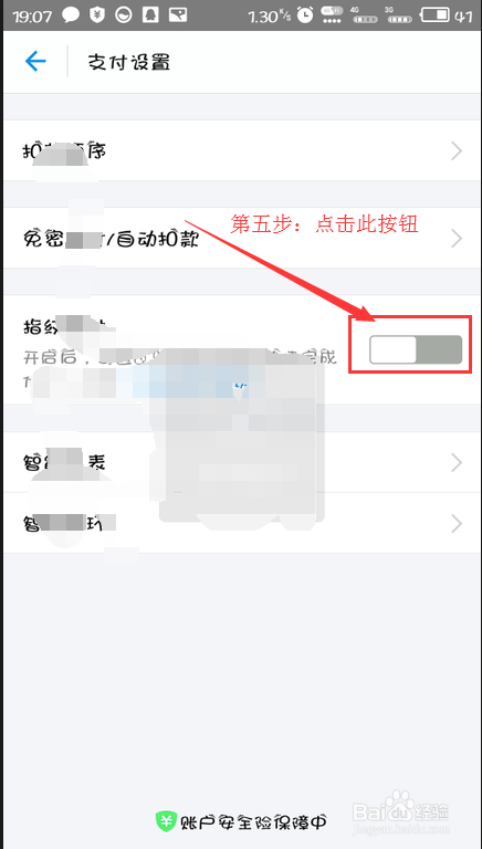第五步:点击打开付出设置中的指纹付出按钮进行相关设置。