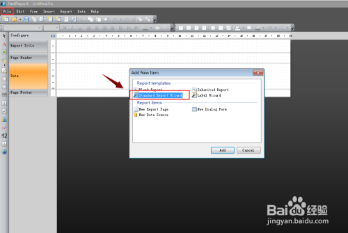 打开已经安装在本机电脑上的fastreport软件,在file中选择new,然后选择standard report wizard 新建一个尺度模板。