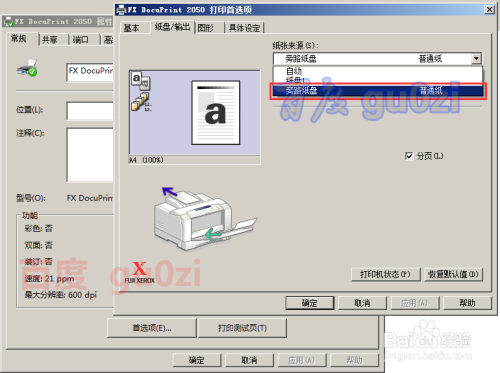 我们可以经由过程属性对默认进纸先设定一下。若是不是经常打印可设定为旁路进纸,需要时再放纸比力便利。