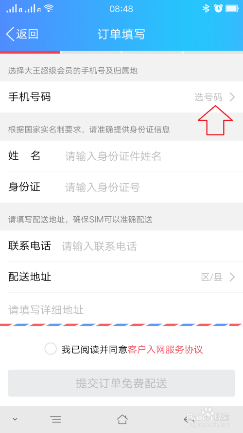 点击0元下的 免费申请按钮,进入到订单填写页面,如图