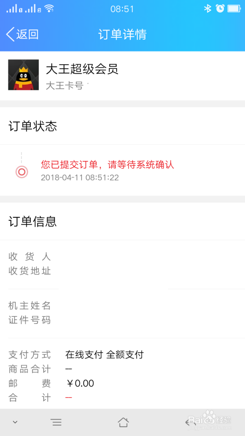 点击查看订单,就可以查看申请的年夜王卡信息了,如图