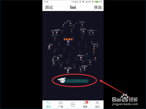 首先,我们来到‘星球 ’页面,在星球页面里,我们可以看到一个‘Matching机械人配对 ’的按钮,当我们点击这个按钮 。
