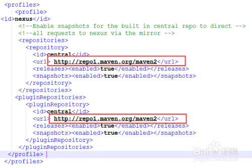 然后找到profiles节点,设置装备摆设Url值,此节点暗示长途仓库的地址,即下载jar包的地址。
