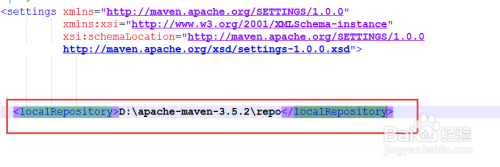 然后打开Maven的Setting文件,找到localRepository节点,此节点暗示Maven从长途仓库下载的jar包存放到当地的路径。