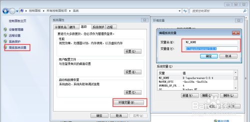 在情况变量中设置装备摆设Maven路径,右键计较机,然后点击属性---高级系统设置---情况变量---新建情况变量,情况变量名称为:M2_HOME,情况变量值为:D:\apache-maven-3.0.4(变量值为Maven解压后的目次)。
