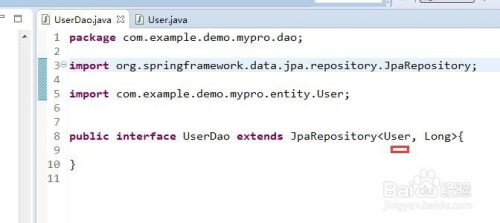 (1)User:entity实体类,用户存储用户数据的数据布局,并和数据库中的表信息相对应。写上响应的set,get方式。