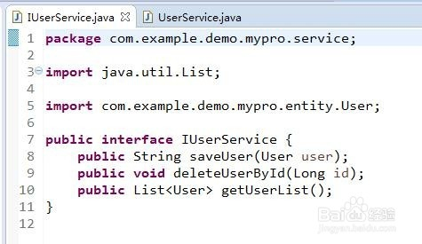 (3.1)IUserService:是一个接口,有三个方式:保留、删除、查询用户数据。