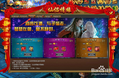 成婚之后进入情缘界面,可以经由过程秀恩爱,举办婚宴以及完当作情缘副原本晋升定情信物和晋升仙缘。都可以增添脚色的攻防属性。