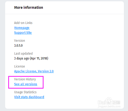 下拉此网站页面,找到See all versions。