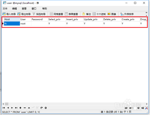 第二步ping通之后,我们点窜mysql数据库中的user表,将Host字段值全数改为%,如下图所示: