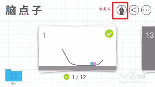 进入‘脑点子’界面后,在圈中笔头标钮,可以选画线,下方列有蓝红两球诸种图位摆法,按入这里。