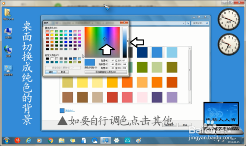 Windows 7 操作系统桌面不想要图片,可以切换当作纯色桌面布景色,还能按照本身的爱好随意调配、切换分歧的颜色。