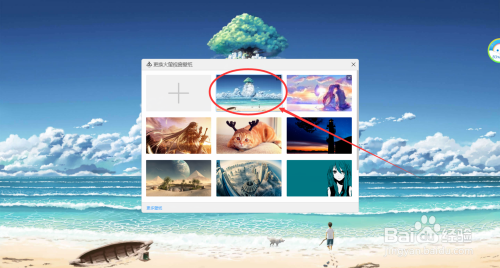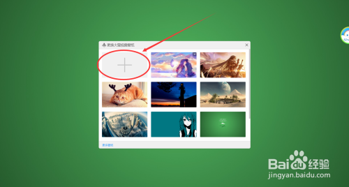 我们把退出浏览网页,返回到本家儿副视窗桌面的改换壁纸页面,我们在改换壁纸页面找到并点击左上角的‘+ ’号按钮 。