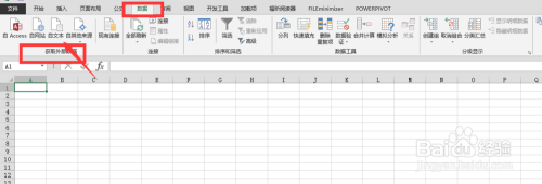 打开Excel文件,当我们需要导入数据时,单击如图所示。先选择菜单栏数据——获取外部数据。