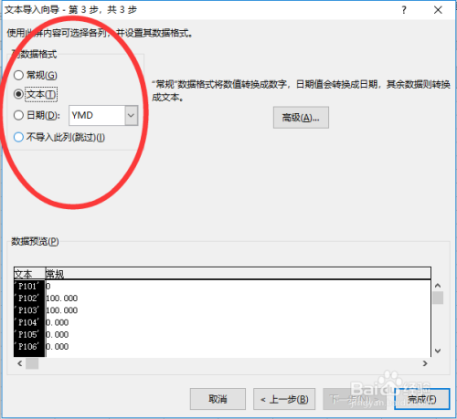 设置第三步,导入数据设置为文本仍是其他的数据格局。选择好之后,单击完当作。