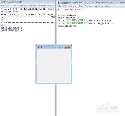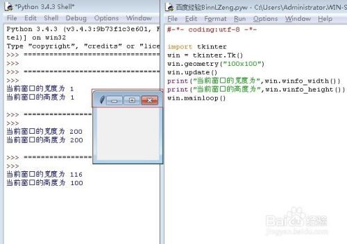 我们要用到的方式是tk对象供给的winfo_width和winfo_height,从字面上我们都可以理解:winfo_width获得窗口的宽度,winfo_height获得窗口的高度。