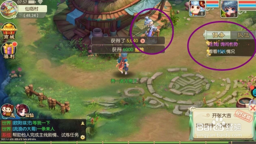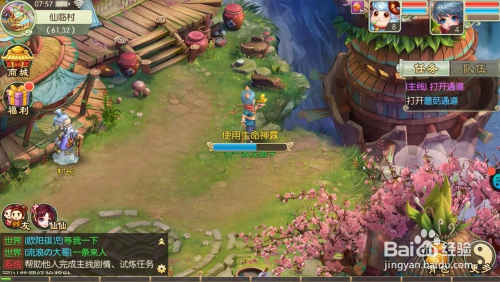 利用生命神露打开前去后山的蘑菇通道并领取后山第一个使命提醒。