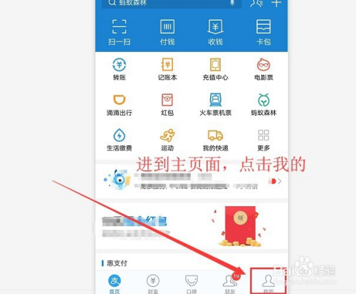 打开【付出宝】进到本家儿页面后,点击【我的】