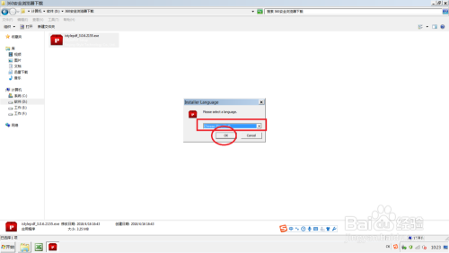 在弹出的说话选择中,选择安装简体中文的字样,并点击OK,如图。