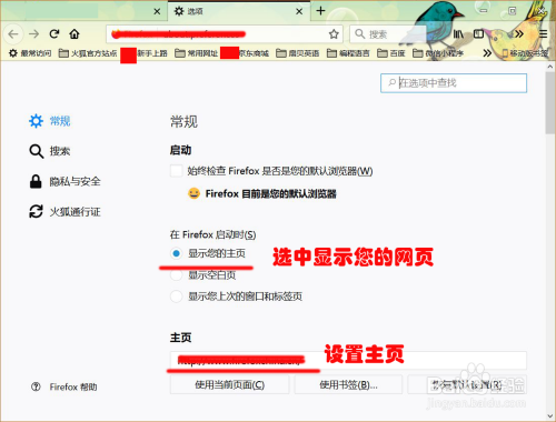 选中显示您的网页,在本家儿页下方的选项框输入本家儿页的网址
