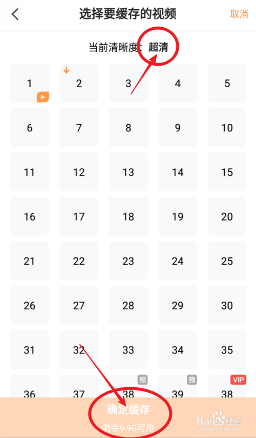 选择下载的【集数】和【清楚度】,这个本身选择