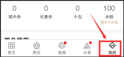 点击打开百度糯米进入的是首页,点击右下角的我的。