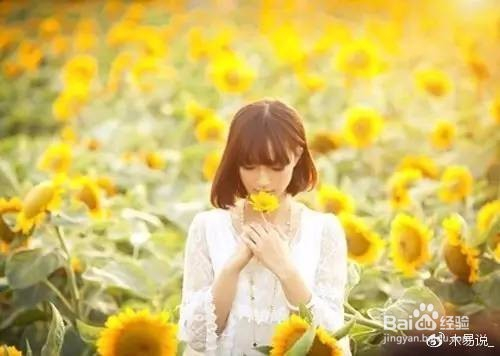 花丛中的娇佳丽,可以垂头看花沉思,也可以看远方
