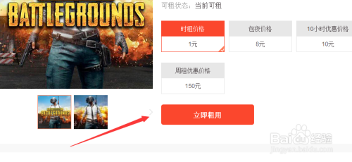 进入到首页之后我们找到绝地求生游戏,点击进入租号的具体页面,在这个页面下有点近似淘宝购物的感受,选择一个账号进行点击跳转(一般价钱都是在1元一个小时)