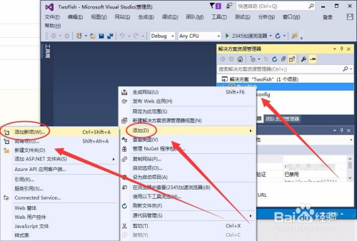 在网站上右击,选择“添加”---->“添加新项”,如下图所示。