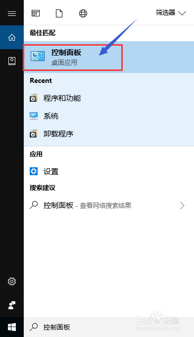 在最佳匹配中,找到桌面应用:节制面板。