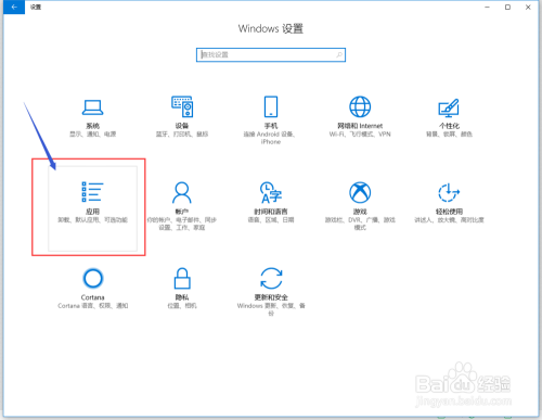 在window设置下,选择应用。