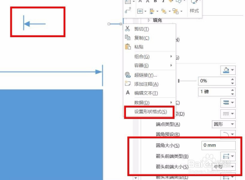 画好后我们右键,选择设置外形格局,然后设置箭头类型即可。