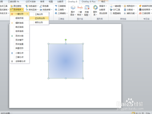 执行onekey8菜单,从东西栏中选择定点相关,接着选择一键分形中的正方形分形号令。