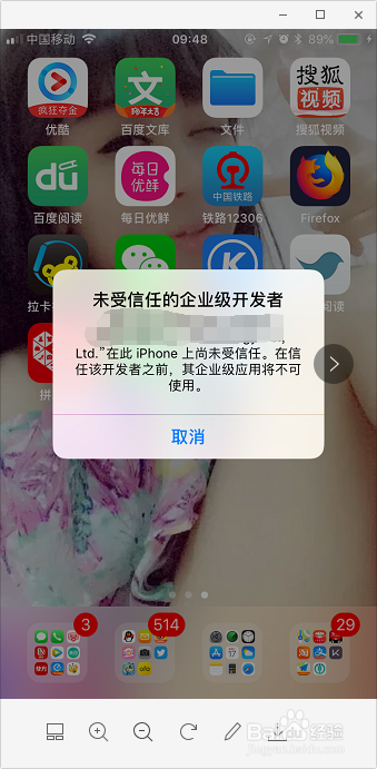 点击完信赖企业级应用后,若是提醒下图中所示的信息,暗示已经设置当作功,然后从头打开App就可以利用了。