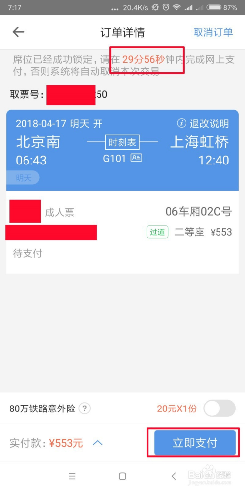 进去后查对本身的信息,无误后点击【当即付出】,选择付出体例,如许就把车票买好了。