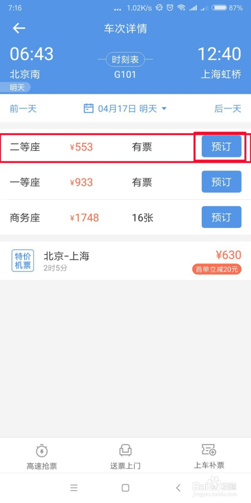 找到合适本身的出行时候和达到时候,点进入后选择需要采办那种票,点击【预定酒店】。