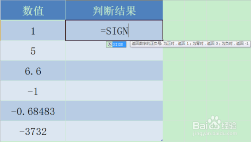 第一步,在指定单位格挪用SIGN函数,即输入 =SIGN ;