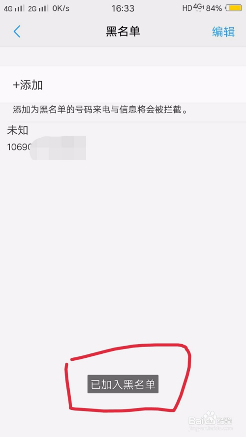 最后你会发现黑名单设置当作功,当然你也可以再次添加更多的垃圾号码。如许就能阻止更多的垃圾信息了。