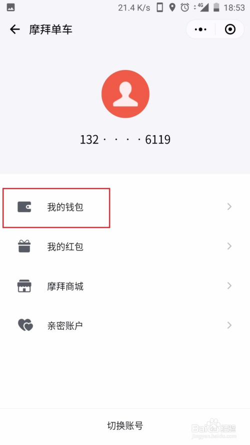 输入本身的账号和密码,然后进入摩拜app,然后找到人头像,点击进入