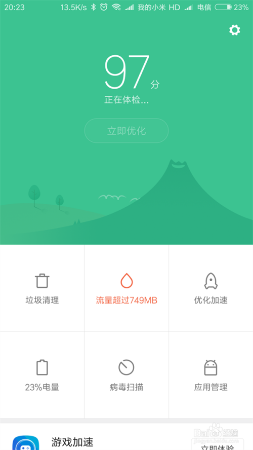 打开平安中间今后就能看到右下角的应用办理,点击打开;