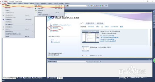 打开VS2010,打开【文件】选择【新建】---【项目】,或者进入界面后直接单击【新建项目】。