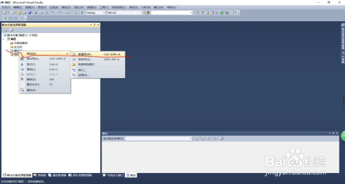 然后在左侧会呈现【解决方案资本办理器】菜单栏,右击【源文件】,选择【添加】---【新建项】。