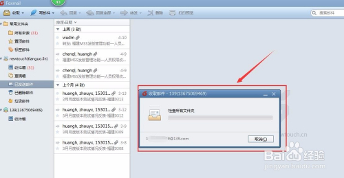在我们设置完当作后,回到客户端的本家儿页面可以看到,左边的菜单栏中呈现我们方才设置的邮箱相关信息,系统默认会获取之前邮箱的相关邮件信息。