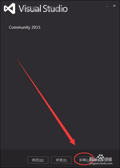 选中Microsoft Visual Studio Community 2015选项,单击更改按钮。