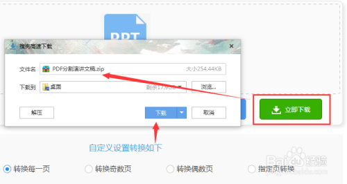 文件添加完当作后,我们往下看,在自界说设置转换中可以设置需要转换的图片页面,以及转换图片的格局还有图片的偏向。