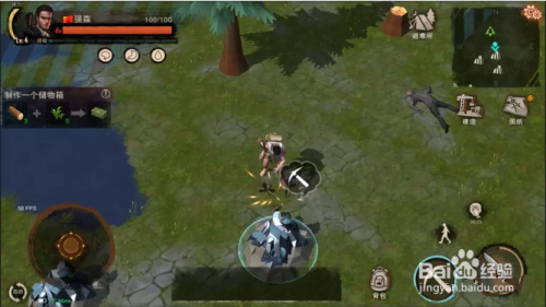 第六步:很显然光这点木材是不足以盖一栋房子的,我们需要操纵一些木材和石甲等合当作建造一把斧头,去深林中砍树获得更多的木材来盖房子,如下图所示。