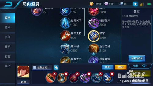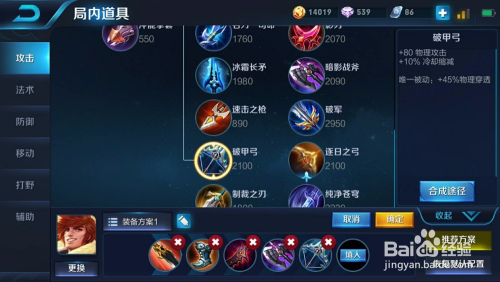 第四件装备选择出破甲弓,这个装备可以有用的增添本身的破甲能力,并削减本身的技术CD的冷却时候;第五件装备选择出破军,可以增添本身对残血英雄进行一个有用的收割,并年夜年夜增添本身的物理进犯能力。