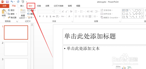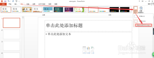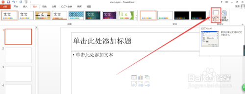 然后点击上面的 设计 菜单,在打开的页面中点击 幻灯片大小 选项。